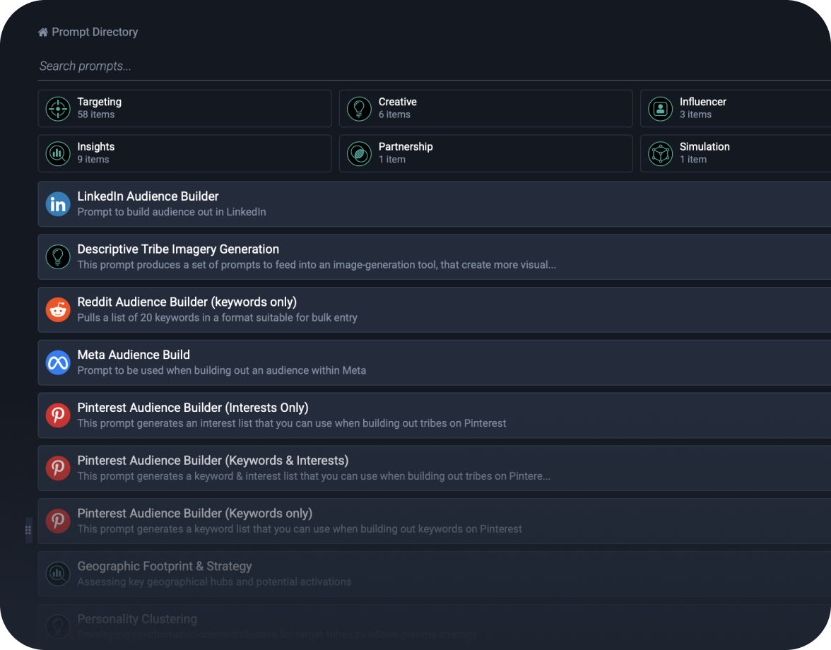 Trained on the full context of each brand’s unique Tribes, it provides answers to any question that reflect how real people think, feel, and respond across different scenarios.